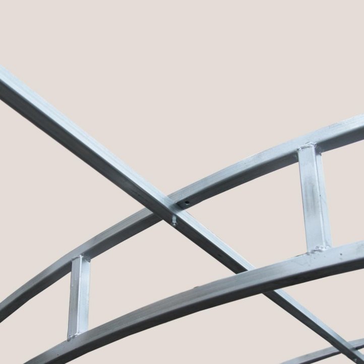 Теплица «ГОСТ» имеет цельносварные торцевые части, в которые уже установлены двери и форточки, а двойные усиленные дуги теплицы не имеют стыков и соединений. Благодаря этому значительно повышается прочность конструкции, что позволяет противостоять даже самым сильным снегопадам, а сборка изделия занимает минимальное время.